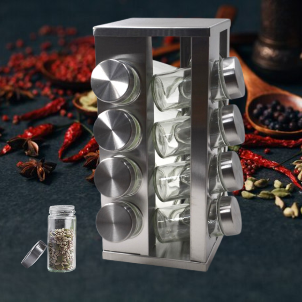 Набір для спецій на квадратній обертовій підставці Spice Carousel Для приправ з 16 скляними ємностями